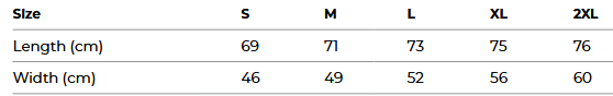 - Sizes: S-2XL