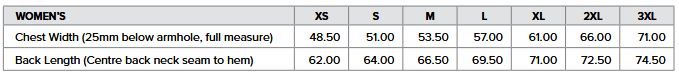 Size Chart (Women's)