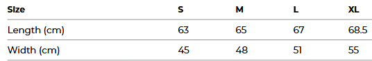 - Sizes: S-XL
